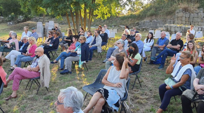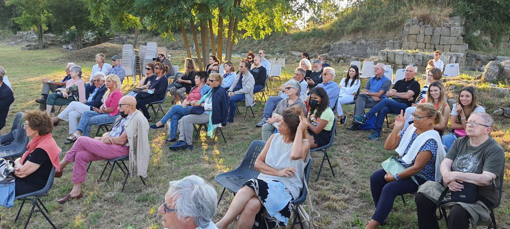 Un omaggio a Dante a settecento anni dalla sua morte. Il primo dei “Tramonti in scena” di Ferento avviene questa domenica 18 luglio  in “tripla dimensione”: letteraria, musicale e figurativa. A dargli corpo, rispettivamente, Giuseppe Rescifina, Giancarlo Necciari e Alessandra Ragonesi, che ricordano i legami del massimo poeta con la Tuscia, rievocati attraverso episodi della Divina Commedia. Attento e alla fine entusiasta il pubblico ospitato accanto al palco allestito all’esterno dell’anfiteatro e a pochi metri dalle antiche terme. Tanti applausi e strette di mano.