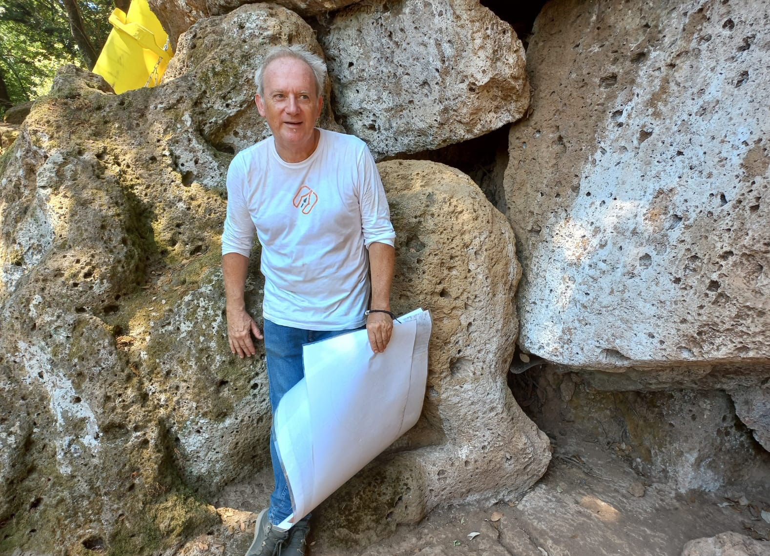Francese di nascita e di studi, viterbese di adozione. Del resto mica si sta per quarantaquattro anni nella Tuscia a ripercorrere e ricostruire l’esistenza degli Etruschi se non si è assimilata la cultura, l’unicità, la bellezza, di questo popolo tra i più intraprendenti, moderni, visionari della storia. L’eloquio, con tanto di erre che scivola delicatamente sulle parole, non lascia dubbi sulle origini, ma è lo scorrere del racconto a testimoniare che le emozioni più private dell’uomo sono sintonizzate con i sentimenti e sincronizzate con i ritmi di vita degli Etruschi. La necropoli di Norchia, le tombe di Rocca Scalina e Lattanzi, l’antica città di Musarna e il sito dell’Asinello, per il professor Vincent Jolivet sono diventati luoghi del cuore. Un archeologo diventato lucumone. Una chiacchierata alla fine di una lunga giornata di scavi, mentre il sole va lentamente nascondendosi dietro l’orizzonte. All’ombra di un gigantesco albero di noci. A fianco l’Ispettore Onorario dei Beni Culturali, Felice Orlandini. Poco più in là un gruppo di ragazzi francesi che fanno parte dell’équipe impegnata nelle ricerche.