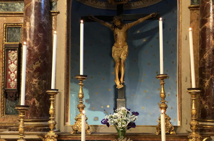 Il sindaco Profili in preghiera per la fine della pandemia davanti al Crocifisso miracoloso di Civita