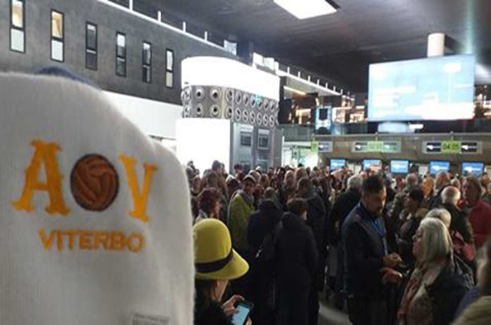 ETNA – Ma l’epilogo della giornata da dimenticare arriva al “Fontanarossa” quando tifosi, squadra e noi addetti ai lavori troviamo l’aeroporto chiuso per la cenere che si era accumulata sulle piste. La squadra rientra in albergo per ripartire la mattina successiva verso Roma mentre per gli altri inizia una autentica odissea notturna. Cerchiamo insieme ai tifosi una soluzione che ci permetta di rientrare il prima possibile, prima il treno, poi addirittura la nave infine l’auto. Per i ragazzi gialloblù sarà l’inizio di una lunga notte che li porterà prima con un breve tragitto in treno, poi in pullman verso Salerno infine ancora in treno a Roma verso casa. Li incontriamo all’autogrill dell’autostrada A3 in terra campana, sono stanchi ma hanno la forza di vincere la loro battaglia contro il destino che gli ha messo di fronte un ulteriore ostacolo dopo il duro e lungo viaggio. Onore a loro che sono l’esempio, la forza motrice di una tifoseria che dovrebbe seguirli soprattutto al Rocchi. Per noi inviati la notte si trasforma invece in un lungo viaggio sull’autostrada fino alle luci di questa mattina quando, seppur stanchi, delusi e affaticati riusciamo a scrivere questo pezzo.
