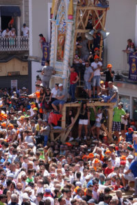 Attualmente i Gigli sono otto. Essi si presentano come degli obelischi di legno che dall’800 in poi hanno un’altezza di 25 metri prendono il nome delle antiche corporazioni delle arti e mestieri, nell’ordine:
