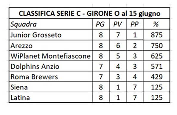 La giornata ha visto il Latina perdere con lo Junior Grosseto 11 a 1 e l’Arezzo superare i Brewers Roma per 8 a 3, rimanendo in attesa degli scontri diretti che potrebbero determinare la classifica finale.