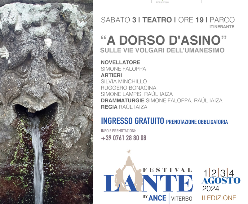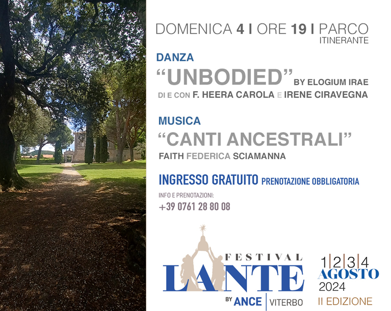 Il “Festival Lante” by ANCE, voluto e sostenuto da ANCE Viterbo – Associazione Nazionale Costruttori Edili – sezione di Viterbo, presidente Andrea Belli e vice-presidente Fabio Belli; in collaborazione con la Direzione Regionale dei Musei del Lazio, del Comune di Viterbo e la direzione artistica di Francesco Cerra del Tetraedro A.P.S.
