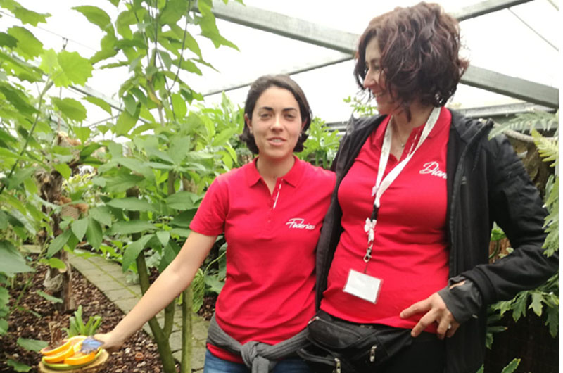 Grande successo all’Orto Botanico “Angelo Rambelli” di Viterbo per il “Primo maggio all’orto botanico… passeggiando tra le farfalle tropicali”, evento organizzato in concomitanza con la kermesse cittadina di San Pellegrino in Fiore. Circa 1.200 visitatori si sono messi in fila per entrare a piccoli gruppi nella serra tropicale, dove per l’occasione volteggiavano decine di meravigliose e coloratissime farfalle esotiche. Abbiamo incontrato la dottoressa Diana Martignoni, tecnico responsabile delle serre, che insieme alla d.ssa Federica Giarruzzo, entomologa, ha accolto i visitatori e raccontato a grandi e piccini particolari e curiosità di questi delicati ed eleganti esseri alati. «L’iniziativa è nata a seguito del nuovo riassetto della serra tropicale: sono state introdotte nuove specie botaniche e sono stati fatti dei miglioramenti all’interno, per ricreare tutte quelle condizioni tropicali e subtropicali di temperatura e di umidità, ottimali per la crescita delle nostre piante», ha spiegato Martignoni. «E poi è venuta anche l’idea di far volteggiare nella serra, anche se per un breve periodo, colorate farfalle tropicali». Specie esotiche che trovano il loro habitat perfetto tra le foglie e i rami delle piante ospitate nella struttura, tra piccoli laghetti e corolle di orchidee. I tecnici dell’Orto Botanico forniscono loro il cibo, costituito da fette di frutta fresca, in appositi piattini dove possono agevolmente posarsi e nutrirsi. «Abbiamo acquistato le crisalidi da zone tropicali come Panama, le abbiamo sistemate in un incubatore e ora stanno seguendo il loro ciclo naturale: le crisalidi si schiudono ed escono le farfalle». Visitatori entusiasti e molto interessati alle varie fasi vitali delle farfalle: «Le persone si sono dimostrate attente e curiose e hanno posto domande: adulti e bambini sono rimasti affascinati dalla metamorfosi. Sono venuti in tantissimi, anche francesi, inglesi ed americani, a trascorrere un bel primo maggio nella natura. Ho visto persone felici e bambini correre nei prati. Vivere e veder vivere in questo modo l’Orto Botanico per me è stato veramente importante. Siamo molto soddisfatti di questo primo risultato, perché siamo riusciti a comunicare il nostro entusiasmo e la nostra passione. E lo saremmo ancora di più se riuscissimo a trasmettere l’idea che c’è un polmone verde di ben sei ettari nella loro città dove, pur essendo una struttura universitaria, si possono trascorrere belle e salutari giornate all’aria aperta: passeggiare seguendo i percorsi con le collezioni botaniche che abbiamo predisposto lungo i sentieri, scattare foto, o semplicemente leggere un libro nel verde. È un posto da vivere». Il successo di questa prima giornata della manifestazione, che durerà fino al 12 maggio, è frutto di un lavoro di squadra: «Voglio ringraziare le persone che hanno fatto sì che si potesse raggiungere questo importante risultato: la d.ssa Monica Fonck, curatore dell’Orto Botanico, la prof.ssa Laura Zucconi, responsabile scientifica, il prof. Giuseppe Colla, direttore dell’Azienda Agraria Orto Botanico, i miei colleghi Sabrina Tempesta, Giorgio Chioccia e Marco Menghi, e tutto il personale che ha permesso che questa fosse una giornata veramente speciale».