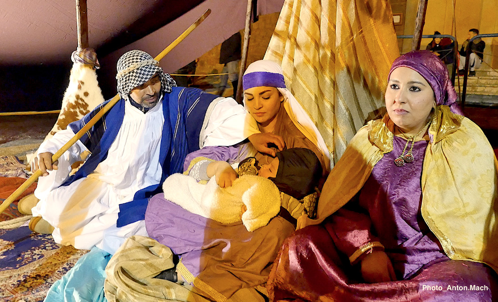 La manifestazione di quest’anno ha introdotto una novità del tutto particolare, un narratore, Antonello Ricci, che con un breve monologo iniziale ha trasportato i visitatori nel mondo incantato del presepe vivente, accompagnandoli con la parola nella Betlemme di oltre 2.000 anni fa e a più di 3.000 chilometri di distanza.