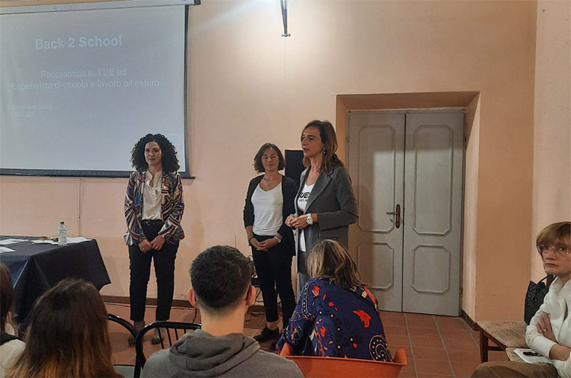 Si è svolto nei giorni scorsi, presso il Liceo Scientifico di Tuscania, sede staccata dell’IIS “P. Savi” di Viterbo, il progetto “Back to school” curato dalla prof.ssa Valentina Rocchi, che ha portato la dott.ssa Anna Lucia Rocca, funzionario delle Istituzioni Europee, a incontrare gli studenti del Liceo Scientifico “G. Galilei” di Tuscania, alla presenza dei docenti e del dirigente scolastico prof.ssa Paola Bugiotti, il giorno 31 ottobre nella splendida cornice di Palazzo Fani. La dottoressa Rocca, che ha studiato nelle stesse aule, si è seduta negli stessi banchi e ha ascoltato le lezioni di alcuni dei professori che ancora insegnano nella sua ex-scuola, dopo l’università e con diverse esperienze di studio all’estero, è volata a Bruxelles, dopo aver letto per caso un annuncio in un ufficio postale. La grande voglia di mettersi in gioco e dimostrare il proprio valore hanno fatto il resto e la dott.ssa Rocca vive ormai stabilmente a Bruxelles, ma, grazie al progetto “Back to school”, è tornata liceale per un giorno e ha potuto dialogare e confrontarsi con gli studenti di Tuscania.