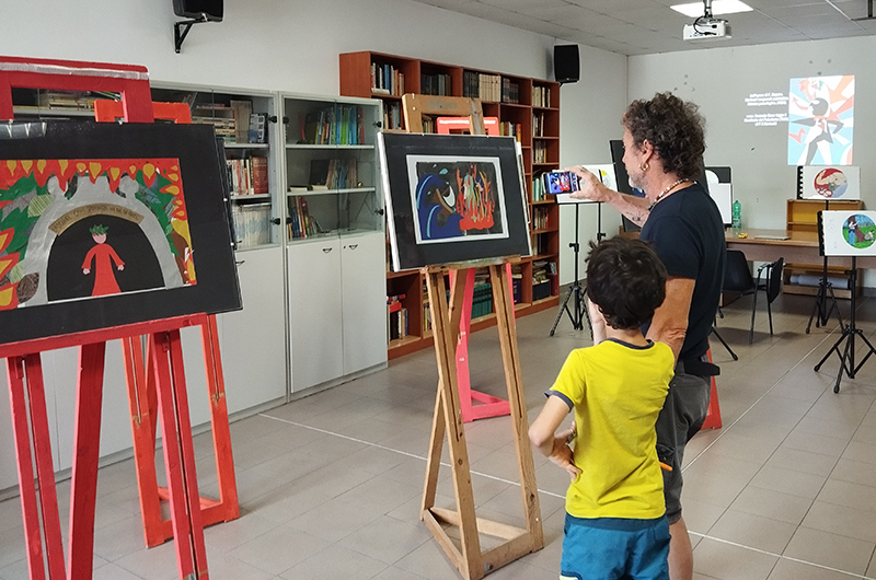 La mostra espone lavori pittorici di studenti della scuola Secondaria di Primo Grado, lavori ispirati a momenti significativi della grande tradizione artistico/letteraria (Omero, Dante, Futurismo).
