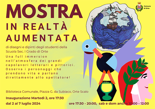 Inaugurata martedì 2 luglio, alle ore 17.30, presso la Biblioteca Comunale di Orte, la mostra in realtà aumentata, organizzata da alcuni docenti dell’Istituto Omnicomprensivo di Orte, che resterà visitabile fino a domenca 7 luglio.