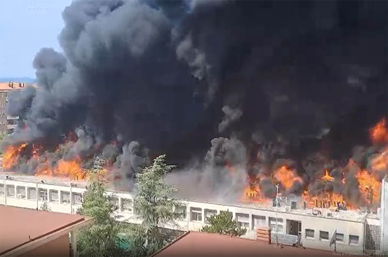 L’incendio si sta propagando anche un’altra palazzina del blocco C del polo del Riello. Si è reso necessario anche l’intervento dell’unità specializzata dell’Esercito per coadiuvare i vigili del fuoco nell’operazione di spegnimento.
