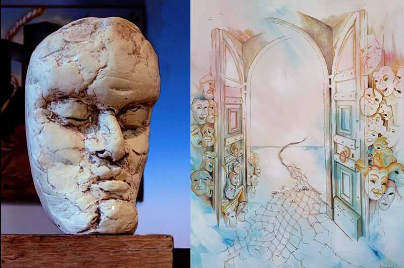 ….Exempla i cui limpidi schietti addentellati appaiono nella felice contaminazione di linguaggi e media, nella commistione tattile e vibrante della polimaterica superficie della sapiente plastica di Fondi, nel suo sublime e istintuale labor lime di intagliatore in grado di dar vita a immagini di intrinseca potenza totemica; , così come nei delicati onirici simbolisti brani di Sanna dall’infinita fiabesca melanconica soavità, atti ad illustrare le carte di una quotidiana novella, o ancora nelle metafisiche e intellettuali “Pieghe della vita” di Crucili, increspature, crepe di un’esistenza in perenne bilico tra concettuale signico e figurativo, tra mono e policromia.