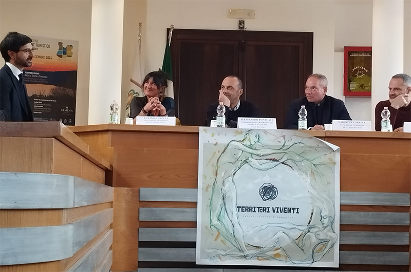 Il progetto vuole sviluppare un percorso paesaggistico che metta in evidenza la bellezza naturale e la biodiversità della Riserva Naturale dei Monti Cimini, creando un’attrazione turistica sostenibile e coinvolgente, presentata e diffusa dall’Info Point che fornirà informazioni su cultura, storia, e attrazioni locali, regionali e nazionali. L’iniziativa vuole unire natura, arte contemporanea e cultura locale, integrando opere d’arte contemporanea nel paesaggio che creino un dialogo visivo tra arte e natura. Il maestro Stefano Cianti, ideatore della parte artistica del progetto, ha dato un piccolo assaggio degli obiettivi del progetto, abbellendo la sala con sue opere. “Ogni comune facente parte del parco riconosce il valore del territorio del parco e si racconta attraverso opere d’arte contemporanea, collocate nei luoghi più suggestivi della Riserva, che si collegano ai borghi limitrofi tramite nessi creativi – ha spiegato Cianti -. “Si tratterà di opere palcoscenico, interattive, con le quali poter comunicare e sulle quali organizzare performances artistiche, veicoli di messaggi legati ai sensi”.