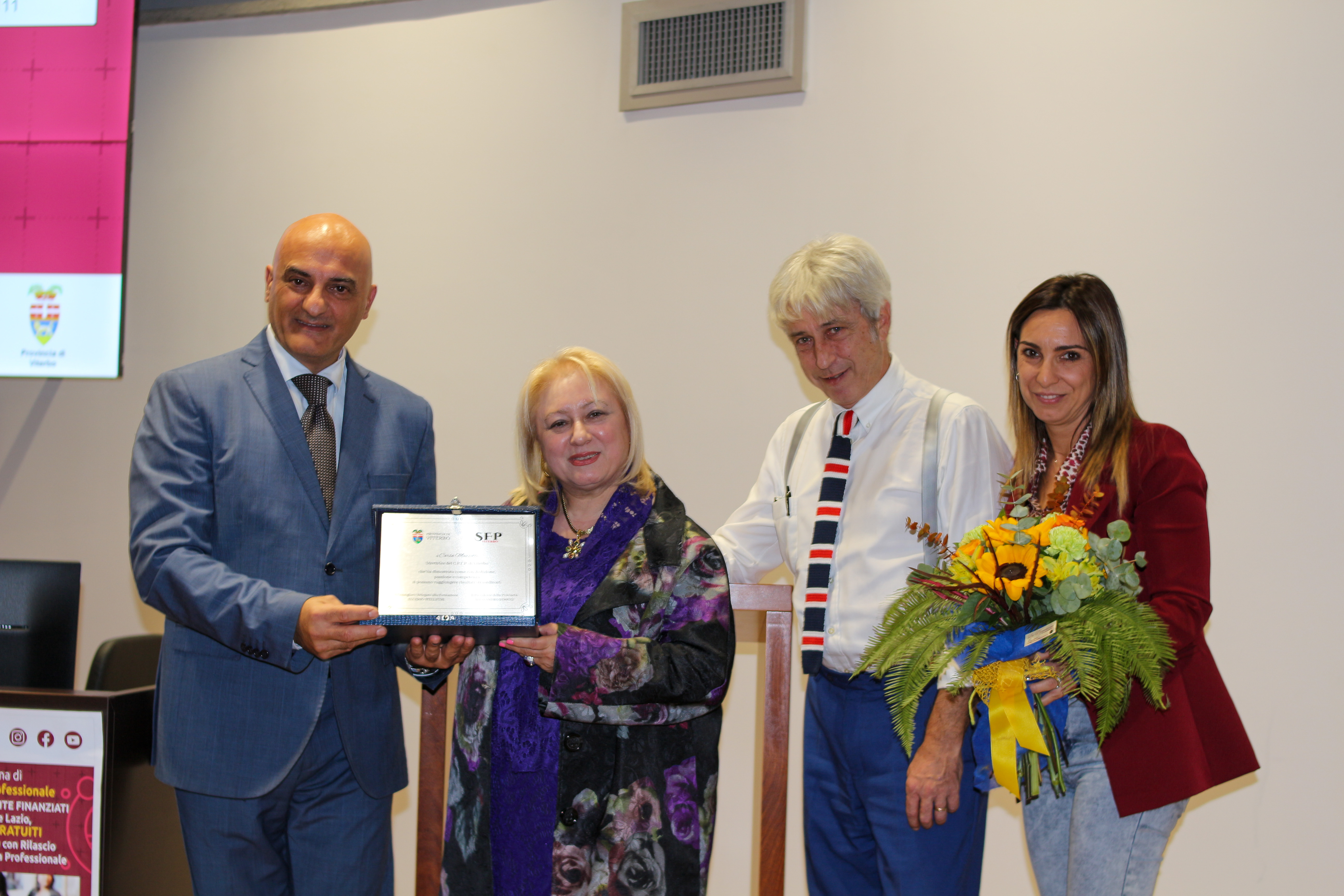 L’incontro è stato anche occasione per premiare i successi del Centro di Formazione di “Via Richiello” a Viterbo. È stata consegnata una targa alla direttrice Carla Mazzetti per i risultati straordinari ottenuti in questi anni, raddoppiando il numero di iscritti dall’anno accademico 2020/21 fino a oggi.
