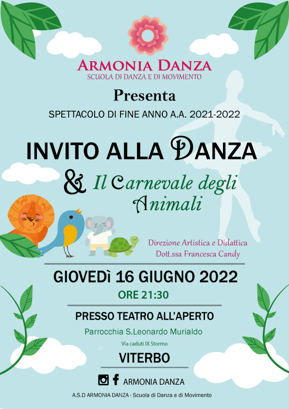 Si torna in scena! La scuola Armonia Danza presenta lo spettacolo “Invito alla danza e il Carnevale degli animali” ricostruiamo lo spazio edificante dell’esprimersi attraverso l’arte del movimento. Direzione e Coreografia di Francesca Candy (nella foto).