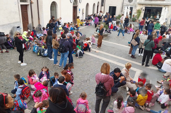 Ma quando un’idea viene condivisa, matura ed evolve, ed ecco come siamo arrivati alla vera e propria esondazione di quest’anno: quasi 600 alunni coinvolti tra Montalto di Castro e Pescia Romana, bambini dai 3 ai 12 anni in una lunga marcia che è partita dalle scuole fino al centro storico e al Borgo Vecchio. Un lungo e colorato fiume che ha gridato il piacere della lettura e dell’ascolto, occupando le piazze e trasformandole in sale lettura.