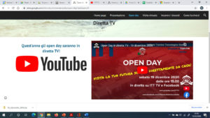 L’iniziativa OPEN DAY – Visita la tua futura scuola direttamente da casa sarà invece un evento online estremamente originale. Non potendo ovviamente organizzare un classico fine settimana di Scuola Aperta, si è pensato di assemblare una diretta televisiva trasmessa a partire dalle 15.00 di sabato 19 dicembre direttamente da uno studio televisivo allestito all’interno della scuola. La conduzione è affidata alla prof.ssa Lina Deriu, reduce con la classe IVaA dal successo della manifestazione Maker Faire 2020 – Call for School.