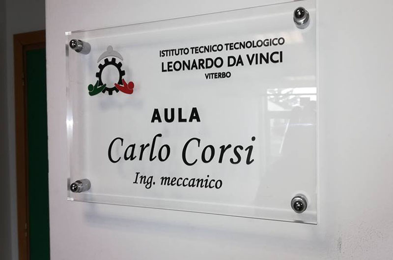 La cerimonia si è conclusa con la commovente intitolazione all’Ing Carlo Corsi del laboratorio di Tecnologie Meccaniche , aula in cui ha formato, per oltre venti anni, decine di periti meccanici .