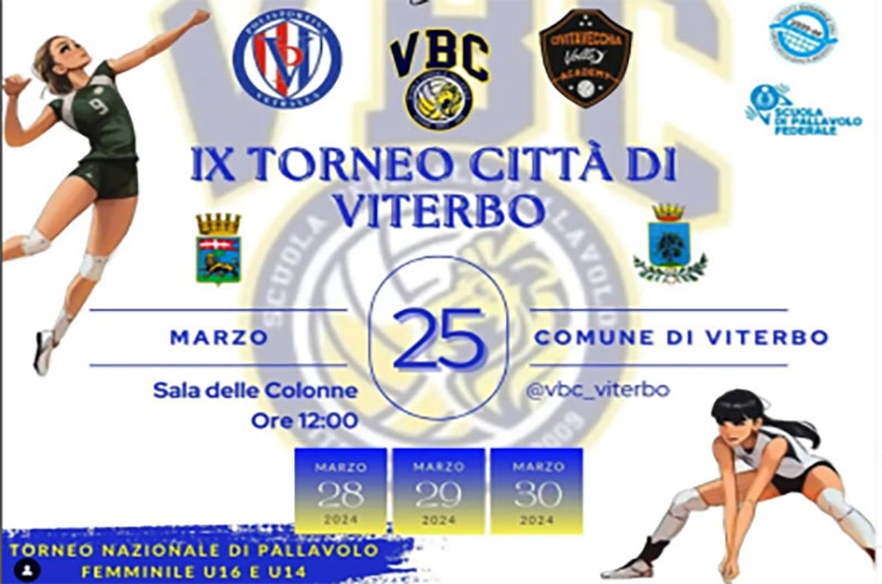 Lunedì 25 marzo mattina nella sala consiliare di Palazzo dei Priori,è stato  presentato il IX Torneo nazionale di pallavolo femminile Città di Viterbo, per under 16 e under 14, organizzato dalla ASD VBC Viterbo, in programma nei giorni 28, 29 e 30 marzo.
