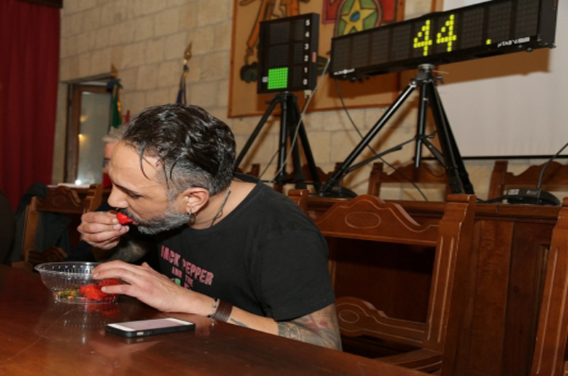 Con il cuore in gola, in prima fila, la sua compagna Barbara e la Pepper Family (tra loro anche Fede Casper Chili ed Emanuela Crescenzi), nell’attesa di una “performance” che in molti hanno sperato fosse eccezionale. E’ stata, invece, una vera e propria strage… ovviamente di peperoncini. Allo scadere dei due minuti, la bilancia si ferma a 146,73. Sono i grammi di peperoncini ingeriti (16 il numero) che creano di fatto un abisso di circa 25 grammi con il primatista statunitense. Una prova oltre ogni limite della resistenza. La lingua di Jack questa volta, a seguito del livello di piccantezza del Bhut Jolokia e del quantitativo ingerito presenta delle irritazioni e piccole ustioni. I testimoni con tanto di guanti e armati di cotton fioc hanno scandagliato, al fine di dissipare ogni equivoco e dubbio, la bocca di Giancarlo togliendo piccoli residui di peperoncino e deponendoli nell’apposito contenitore.