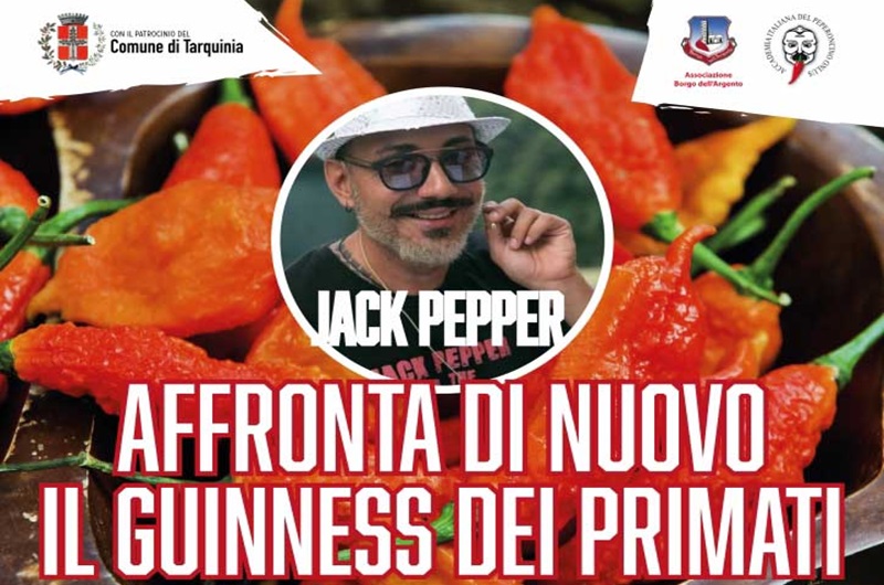 Domenica 4 febbraio, nella Sala Consiliare del Palazzo Comunale di Tarquinia, Jack Pepper, alias Giancarlo Gasparotto, cercherà nuovamente di strappare allo statunitense Kevin “L.A. Beast” Strahle, il Guinness Mondiale di mangiare la maggiore quantità di peperoncino Bhut Jolokia nel tempo di 2 minuti.