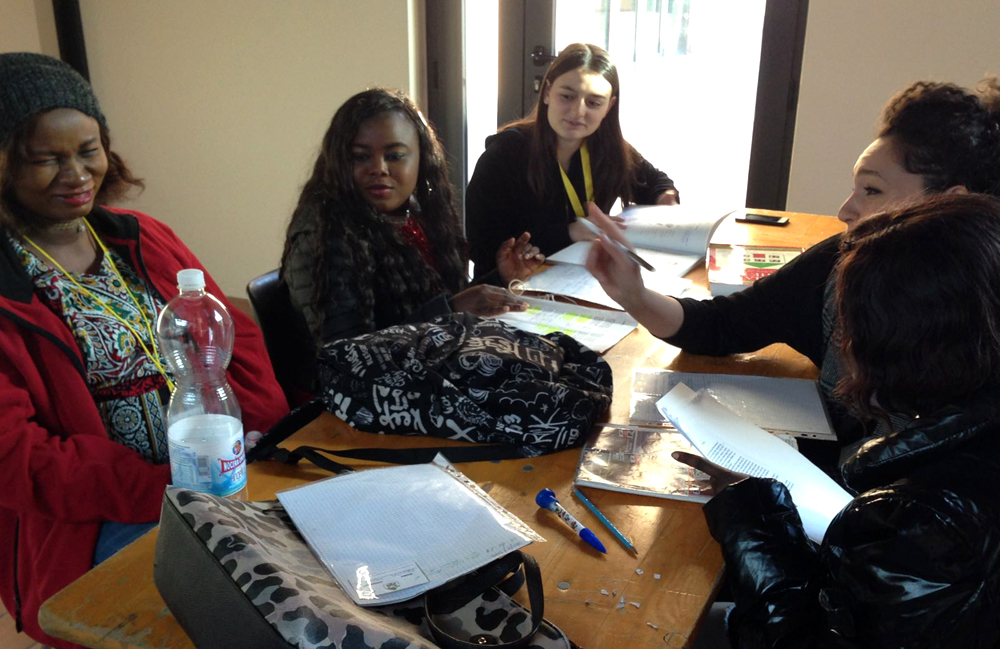 A non pochi giorni dalla ricorrenza della giornata della memoria e in pieno clima di frontiere chiuse e lista di paesi non ammessi negli USA con il nuovo presidente eletto, mai poteva essere di più ampio respiro per il mondo dei diritti e dell’attenzione all’altro un pomeriggio come quello di oggi presso l’ex Mattatoio di Viterbo a Valle Faul. Proprio qui, nei locali messi a disposizione dalla Fondazione Carivit si sono incontrati tanti giovani immigrati che vivono a Viterbo o venuti dalla provincia per seguire per circa due ore una lezione di lingua italiana con il metodo della scuola Penny Wirton, che la Casa delle Arti del Pilastro ha adottato da due anni con grande successo grazie all’impegno dei suoi volontari. La scuola Penny Wirton nasce dall’idea dello scrittore Eraldo Affinati e di sua moglie Anna Luce Lenzi, dove i professori sono docenti, pensionati, ragazzi italiani e non; un’idea di scuola che si distacca da quella ufficiale, dove viene eliminata l’idea di classe alla base e si sostituisce con la relazione personale tra chi apprende e chi insegna, il tutto su azione volontaria e spontanea degli insegnanti nel mettere al centro la qualità della relazione umana, dove l’altro rappresenta un mondo, una storia…e qui i ragazzi immigrati allievi sono tutti motivati: per loro imparare la lingua italiana è un modo per trovare un lavoro, per rendersi accettato dalla comunità che lo ospita e poter comunicare con altri immigrati. Proprio come lo sarà per Abdhullaye, un ragazzo di 17 anni del Senegal, da soli cinque mesi in Italia, vive in una casa famiglia qui a Viterbo insieme ad altri ragazzi egiziani- mi ha raccontato- molto attento e serio durante la lezione, nel suo apprendimento di articoli e preposizioni della grammatica italiana seguendo schede d’esercizio già redatte che il volontario gli propone di volta in volta.