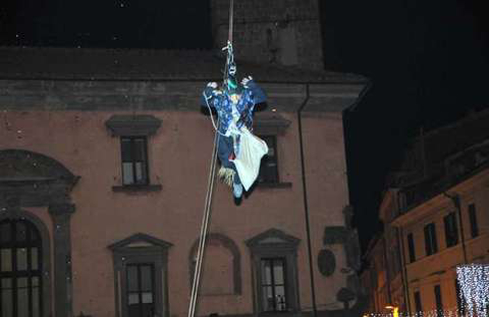 La Befana scende dalla torre di piazza del Comune