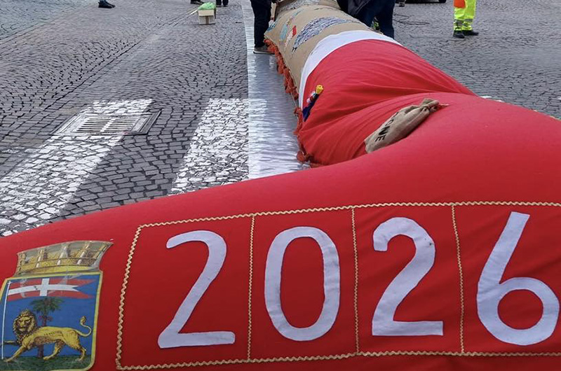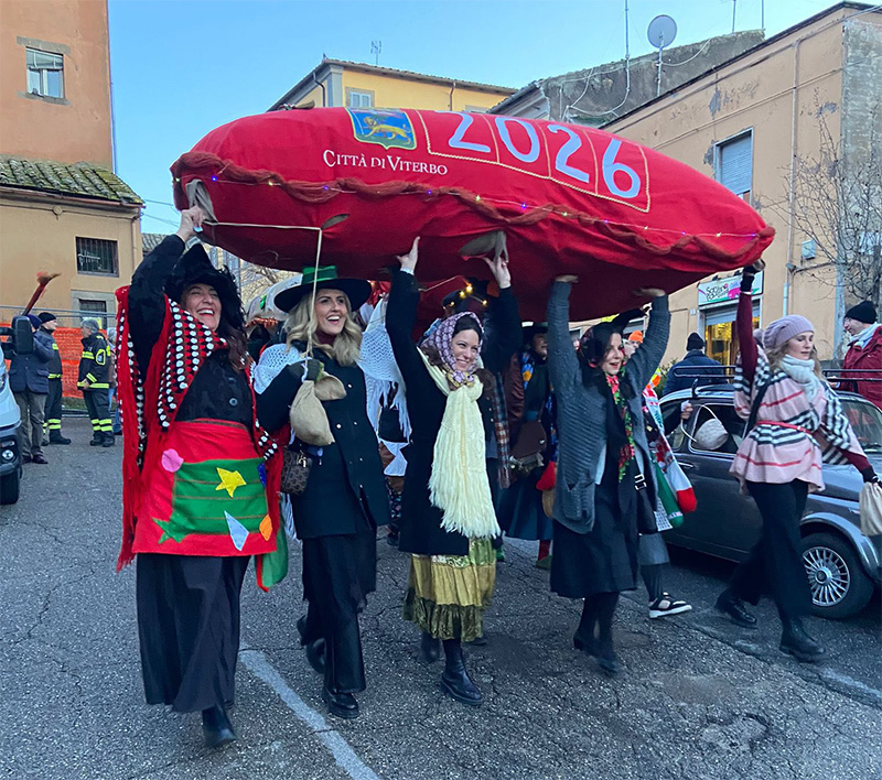 E alla fine il  tempo ha tenuto e a distanza di una settimana dalla data di calendario(il 5 gennaio),sabato10 gennaio l’atteza Calza della Befana ha sfilato per le vie di Viterbo.  L’evento ormai diventato un cult, l’eco è giunto pure al di fuori dei confini geografici della Tuscia.  Cosicchè la Calza 2026 è tornata a sfilare per le strade del centro storico di Viterbo. 52 metri di lunghezza e sorretta da 100 befane ha visto  in prima fila la rappresentanza politica e stituzionale: la sindaca Frontini, la vice presidente del Parlamento Europeo Antonella Sberna, la consigliera di opposizione Alessandra Troncarelli, la consigliera del Giubileo Alessandra Croci, la fedelissima Paola Massarelli referente di Admo, i rapresentanti del consiglio comunale e delle associazioni, nonchè Luciano Barozzi presidente storico del Centro Sociale Pilastro, ideatore della iniziativa. A sorreggere la calza nella sua sfilata anche  le 15 fiat 500 storiche.