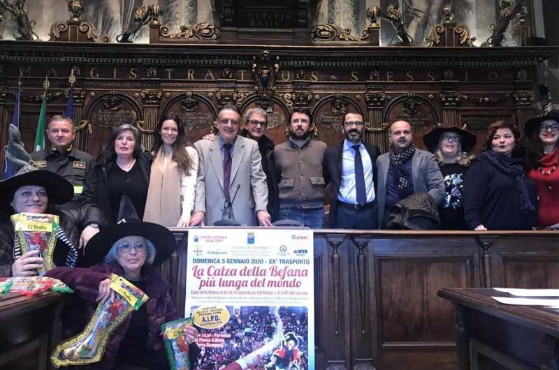 “Nessuno ci toglierà il primato,allungheremo la calza di 85, anche di 100 metri” sorride l’assessore Marco De Carolis e Antonella Sberna sottolinea che “questo evento è anche una boccata d’ossigeno per la forza della sua solidarietà”, il contributo economico elargito ha come speranza che questa manifestazione venga cristallizzata” e sarà proprio lei quest’anno a guidare le 110 Befane che trasporteranno la Calza su dieci 500 da Porta Romana fino al quartiere Pilastro. Partecipa anche il Centro Sociale di San Martino, accanto a consiglieri comunali, medici, ragazzi, la Befana non è anziana!