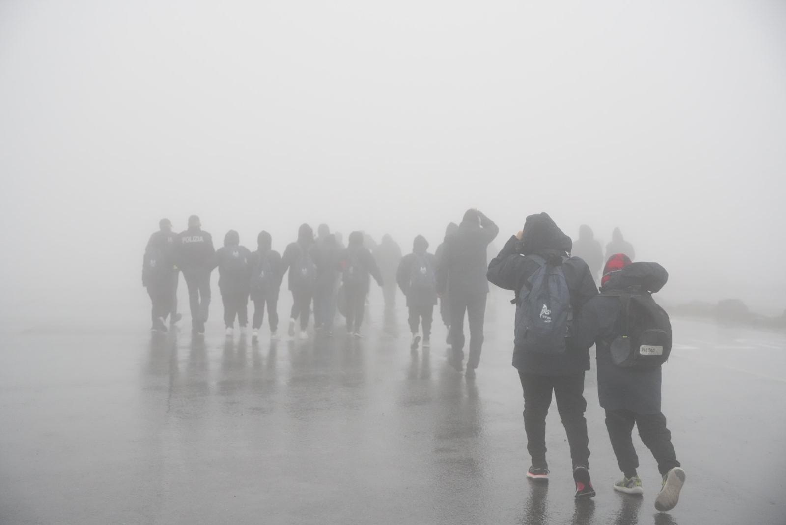 Il vento ci spostava in ogni direzione, raffiche a 50 chilometri orari. Siamo scesi dalle auto che non riuscivamo a vedere più lontano di 10 metri, avvolti dalla nebbia.