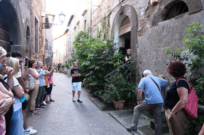 Ritorniamo al paese dopo una ripida salita per fermarci alla cantina del cavone dove si ricorda Giovanni Tedeschi recentemente scomparso, sembra di vederlo camminare per gli antichi vicoli con il suo mantello nero, per le vie della sua amata Blera mentre declama i versi di “Bieda Nguattarella” sicuramente la più bella dichiarazione d’amore per il suo paese.