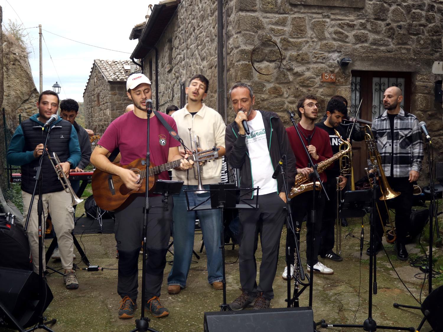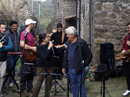 Dal centro storico della frazione sorianese è partita la festa, iniziata da una sfida a suon di versi estemporanei, come accadeva nelle campagne dell’Ottocento, tra Pietro e Michela Benedetti, mentre alle loro spalle iniziava timida la musica di accompagnamento che si è poi trasformata nel concerto stralunato guidato da Maurizio Gregori, potente e coinvolgente.