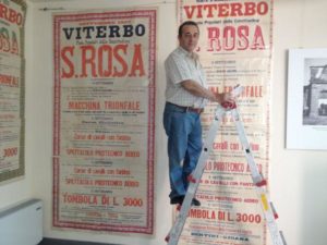 Grande soddisfazione è essere nonno di Sara e Matteo, tutti e due hanno tre anni e con loro trascorro ore deliziose, parlandoci e insegnando i numeri, il significato delle parole, disegnando, giocando con le costruzioni, con le macchinine, con le bambole. Mi fanno ritornare a quando ero bambino, quando avevo uno, due giocattoli, sufficienti per essere felice. Oggi cerco di far apprezzare loro come mi divertivo con poco e con giochi semplici: battimuro, tappetti, palline, figurine, un mondo perduto sopraffatto da giochi che rendono inattiva la mente e il movimento. Dispiaceri? Aver perduto i miei genitori, vedere la nostra città troppo trascurata, non rispettata, vedere i monumenti che cadono a pezzi senza che nessuno faccia nulla. Il sogno? Quello di poter raccogliere tutto il materiale, migliaia e migliaia di pezzi, che ho accumulato in 56 anni assieme a mio padre. Libri, foto, cartoline, stampe, manifesti, santini, etichette, medaglie, ceramiche e terrecotte, tutti riguardanti Viterbo e i paesi della provincia ed esporli perché possano essere motivo di studio, di ricerca, di amore per una terra antica come la nostra. Viterbo è casa nostra. Le porte nelle mura castellane sono l’uscio della nostra abitazione, le facciate dei palazzi sono le pareti, le strade il pavimento, le piazze le stanze, mancare di rispetto ad esse è una violenza alla nostra intimità.
