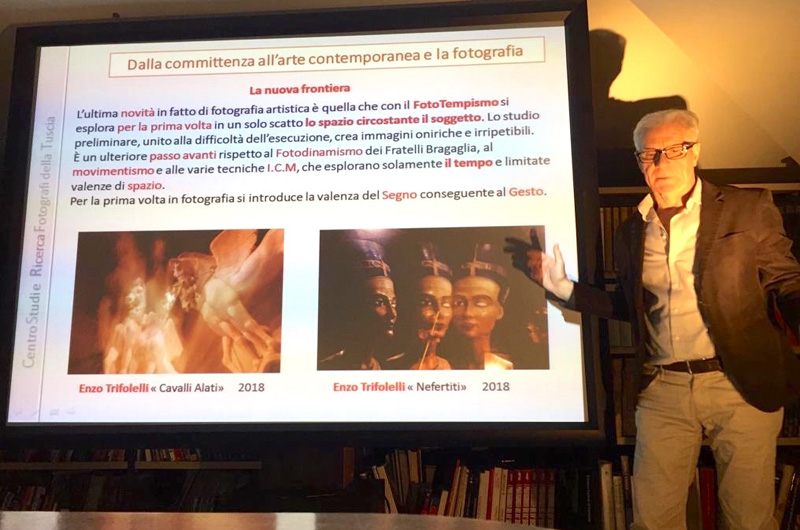 La Tuscia terra di sperimentazioni artistiche, di ricerca di nuove frontiere espressive, mostra la sua vitalità nell’incontro Organizzato dalla Associazione culturale Il Castello che si propone tra le tante attività, quella di promuovere a Soriano nel Cimino un Centro per l’Immagine. Il titolo dell’incontro : La committenza, l’Intellettuale Iconografico e l’Autore nell’arte classica e nell’arte contemporanea compresa la fotografia che cerca di riannodare i fili di un tema in continuo mutamento, anche alla luce delle tecnologie sempre più performanti, che concedono una nuova dimensione espressiva. In un convegno con: Andrea Alessi (direttore Museo Acquapendente), Gianpiero Ascoli(curatore artistico), Francesca Pandimiglio ( critico d’arte), Francesca Ceci (archeologa), Marco Grosso ( Fotografo e poeta), Marco Scataglini ( fotografo e scrittore), si è così esplorata la valenza della Committenza collegata con il suo referente Intellettuale Iconografico e l’Autore dell’opera artistica, con il fine di contestualizzare e rapportare ad oggi l’arte contemporanea, in particolare la fotografia. Ogni relatore ha dato il suo particolare apporto al dibattito, in riferimento a quali sono i valori che oggi ha raggiunto la fotografia “artistica” e quali deve ancora raggiungere. Chiarificatrice ai fini del dibattito, l’introduzione fatta da Giampietro Ascoli partendo dai classici per arrivare ad oggi. interessante come sempre, l’interazione tra opere classiche, in particolare Michelangelo e l’arte contemporanea (FoTotempismo di Trifolelli) fatta da Andrea Alessi su come l’arte dei grandi artisti Italiani, continua nella ricerca, e si scopre anche nelle opere contemporanee. Importanti approfondimenti sulla fotografia sono stati fatti da Marco Scataglini e Marco Grosso. Gli approfondimenti dell’uso della fotografia, fatta anche da altri autori, e spiegata da Maria Pizzi e Cristina Biggio, le quali nella realizzazione delle loro opere, usano parti di immagini effettuate da altri fotografi, per comporre una nuova immagine, che ogni volta si rigenera comunicando nuove emozioni. L’appuntamento prossimo è per il 29 novembre alle ore 21.00 in via Roma, 46/b Soriano – ingresso libero – per continuare un dialogo interessante sulle opere contemporanee e parlare delle ultime novità.