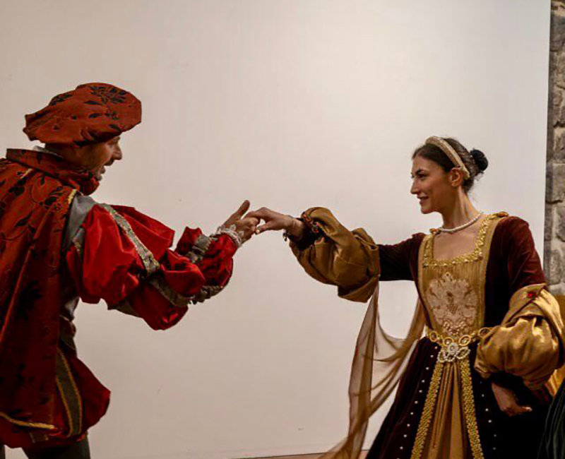 Lo spettacolo presentato con sfarzosi costumi realizzati sulla base di fonti iconografiche del tempo, ha condotto un pubblico particolarmente coinvolto nell’epoca della Rinascenza, tra musiche, canti, danze ed antiche arti, in un mondo in cui le magiche atmosfere cortigiane riprendono vita.