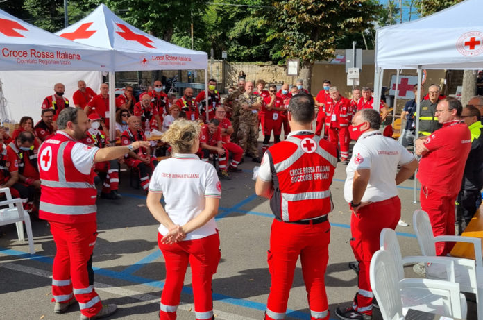 La Croce Rossa Italiana in assetto di emergenza a Civita di Bagnoregio