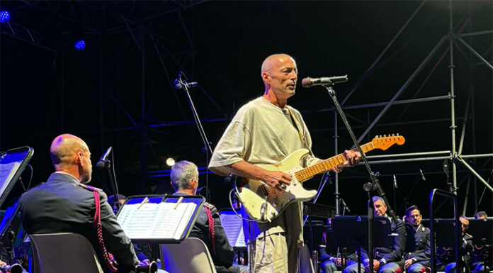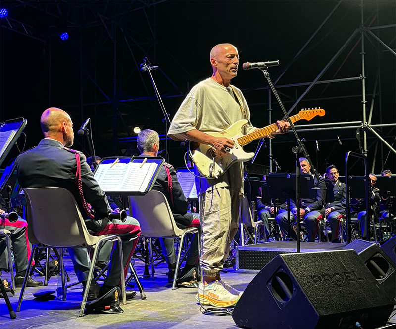 Il concerto ha avuto il suo apice con alcuni dei più più famosi successi del chitarrista e cantautore solista Alex Britti, che si è esibito dal palco chiudendo con il brano “7000 caffè”, eseguito nell’arrangiamento della Fanfara e curato dal compositore Walter Farina.