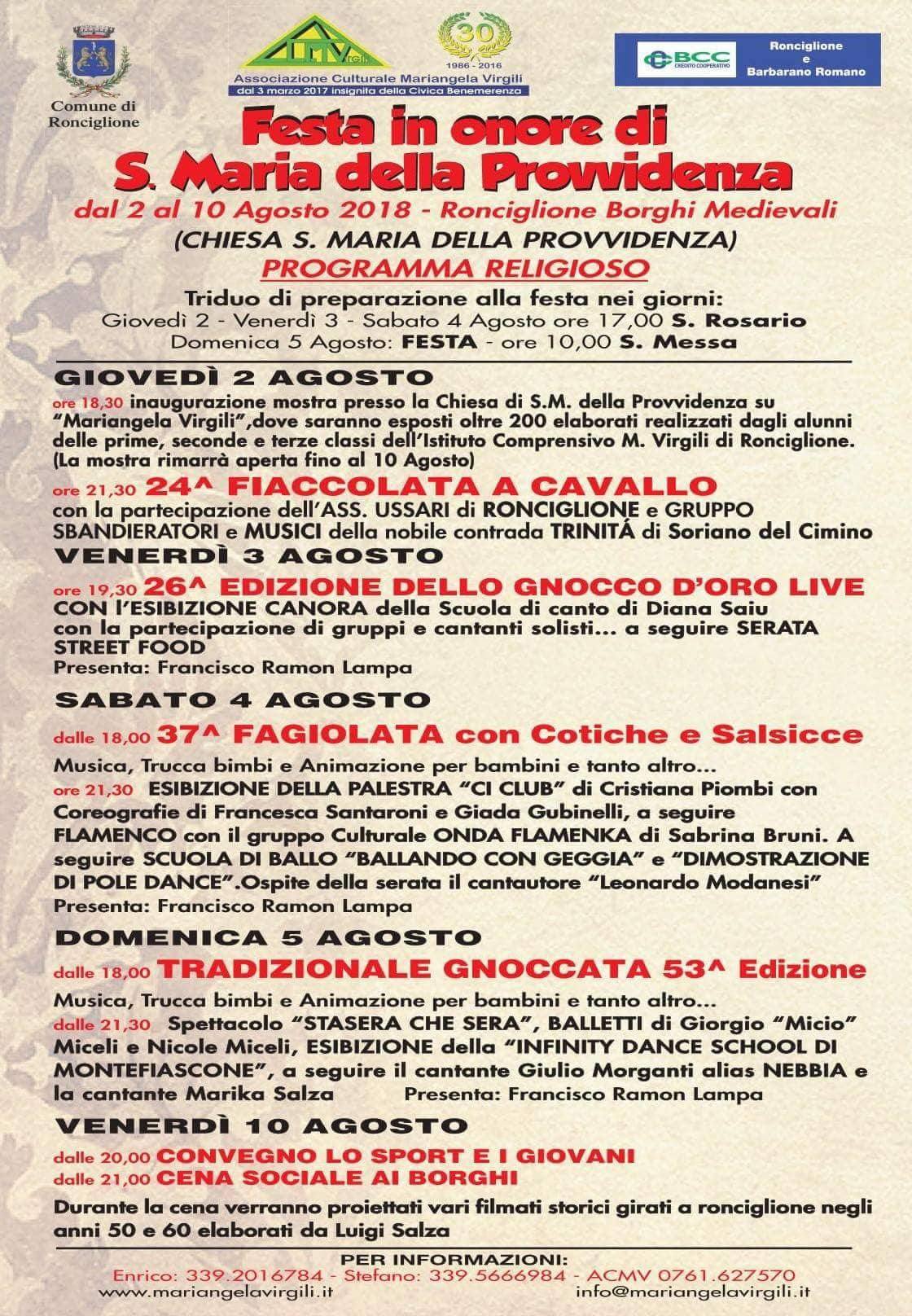 Le celebrazioni, che si terranno dal 2 al 10 agosto, sono organizzate come succede ormai da trent’anni a questa parte, dall’associazione Mariangela Virgili, attivissima sul territorio nell’ideazione e realizzazione di numerose manifestazioni, anche in sinergia con altre associazioni presenti.