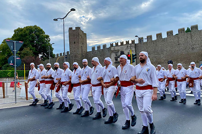 La formazione dei facchini che effettuerà il Trasporto di Santa Rosa 2025.