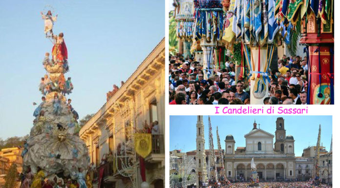 Santa Rosa di Viterbo, i Gigli di Nola, la Varia di Palmi e i Candelieri di Sassari formano,