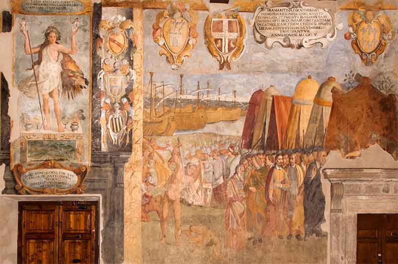 All’interno del virtual tour un menu a scomparsa guiderà il turista digitale alla scoperta di ciascun personaggio e storia raffigurata sulle pareti; basterà cliccare su uno dei nomi dell’elenco per essere automaticamente portati di fronte al dipinto scelto e leggere o ascoltare la sua storia. Il Sediario, Tagete, il Cardinale Vitelleschi, i Magistrati e altri personaggi vi aspettano per raccontarvi interessanti aneddoti e curiosità.