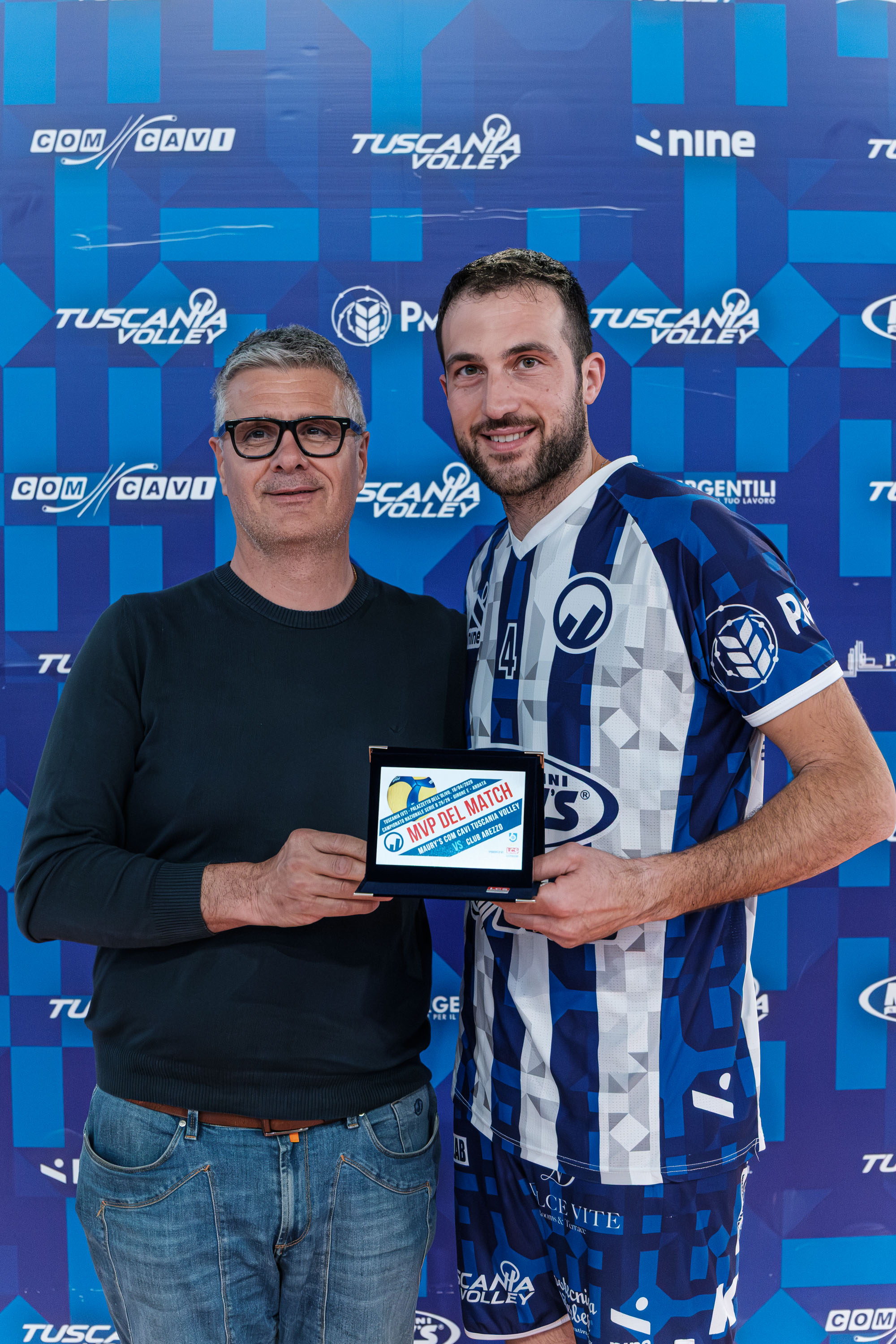MVP: Roberto Festi premiato dal vice presidente del Tuscania Volley Paolo Guglielmana