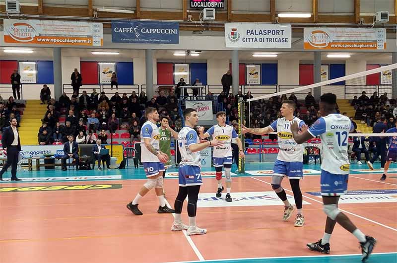 Una Maury’s Com Cavi Tuscania costretta all’ultimo momento a rinunciare a Parisi, tenuto a riposo precauzionale per un risentimento muscolare, e con un Sacripanti a mezzo servizio, per lo stesso motivo, cede in tre set all’Aurispa Libellula Lecce ma, nonostante la battuta d’arresto, conserva la terza posizione in classifica grazie alla contemporanea sconfitta di Palmi a Casarano.