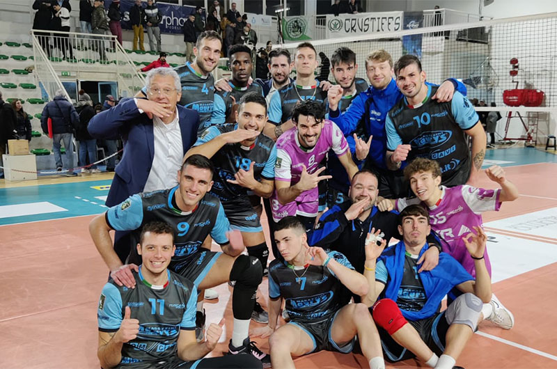 Quarto set. Punto a punto fino al muro di Onwuelo su Maretti con Esposito che ferma il tempo 15/17. Attacco vincente di Corrado per il 18/21. Con un parziale di cinque a zero, con tanto di ace finale di un Festi davvero efficace anche dai nove metri, Tuscania chiude set e incontro 19/25.