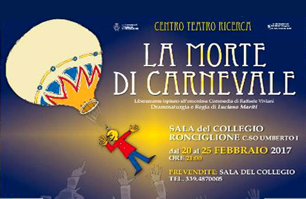 Tutti questi elementi si ritrovano, magistralmente rielaborati, nella commedia di Luciano Mariti “La morte del Carnevale” – con il Centro Teatro Ricerca di Ronciglione – che ripropone i caratteri salienti di un’opera buffa, popolare e rappresentativa degli eventi del quotidiano, della vita e della morte che coinvolge tutti.