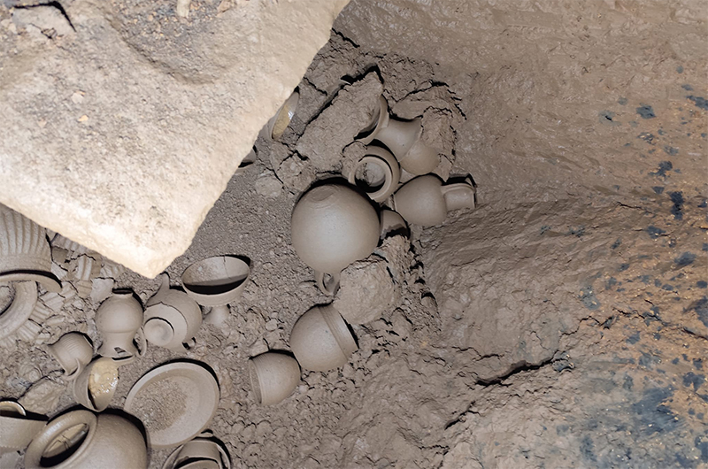 Grazie agli scavi portati avanti dall’Università Baylor del Texas dal 2016 con il progetto Sgarp, quest’anno è stato portato alla luce un imponente tumulo risalente al VII sec. a.C., con il passare dei giorni l’adrenalina è salita con il ritrovamento del Dromos d’ingresso, e a mano a mano che lo scavo andava avanti e cominciava a vedersi la porta che immetteva nella stanza sepolcrale, grande è stata l’emozione da parte degli archeologi quando si è cominciato a capire che l’ingresso era sigillato da un blocco di tufo di chiusura, tutto ciò faceva presagire che la tomba era inviolata, come poi è stato.