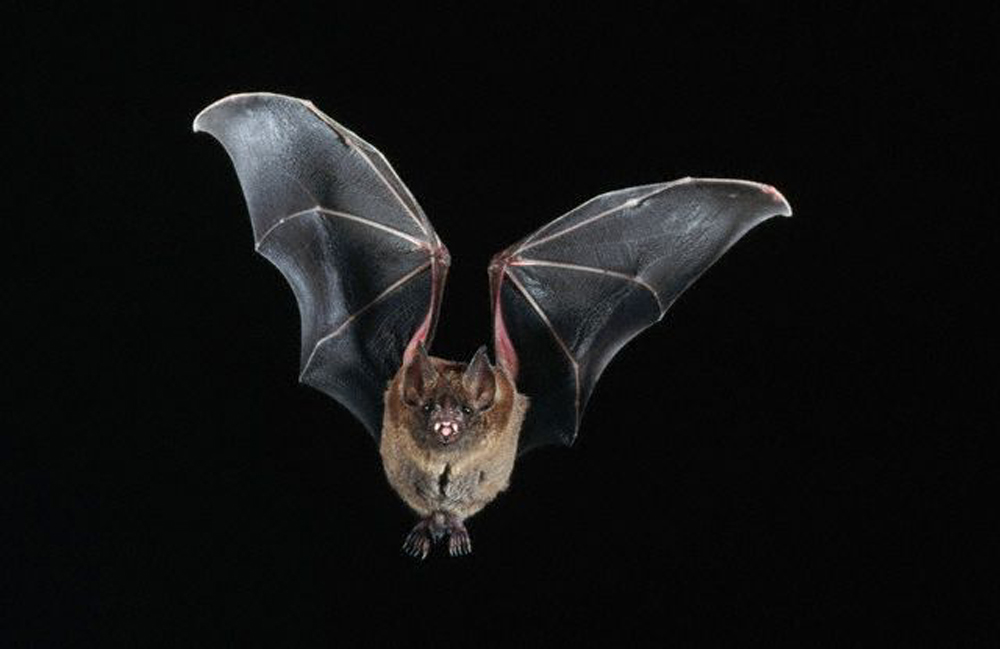 ca. 1997, Central America --- Leafnosed Bat Flying in Night --- Image by © Joe McDonald/CORBIS