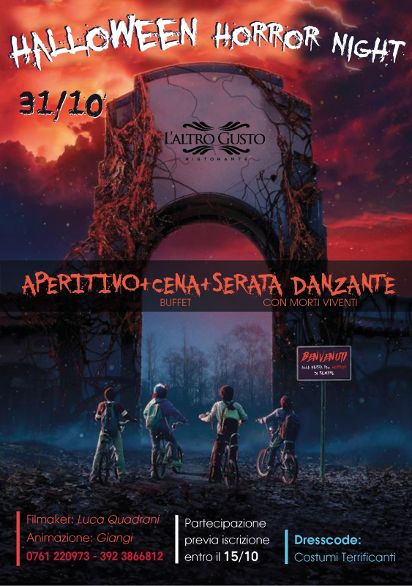 Viterbo 31 ottobre 2019 – Se tutti gli anni è la stessa storia con la notte di Halloween. Una storia trita e ritrita, quest’anno quelli dell’Altro Gusto in via delle Maestre, 2 (traversa di via Mazzini) a Viterbo fanno sul serio e preparano cose inaspettate. L’idea di Letizia Ragonesi e Simona Ionta  ideatrici della serata, è quella di creare suspense e allgria. La serata è già in lavorazione ci sono tante zucche da svuotare perché il simbolo di Halloween è la zucca intagliata e si raffigura nella scorza un volto, che può essere minaccioso o allegro. Ma anche lo chef Daniele non scherza e sta disponendo lo sfizioso menù e il qualificato cameriere Dorian sta preparando il suo look per l’occorrenza. Dolcetto o scherzetto? Tanto divertimento e sorprese. Costumi mostruosi.