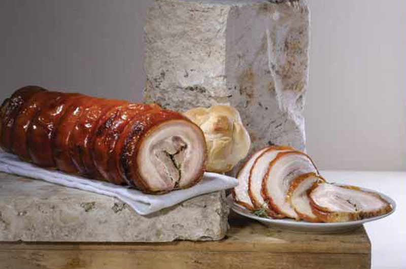 La porchetta, il cibo della festa nella Tuscia con il finocchietto selvatico
