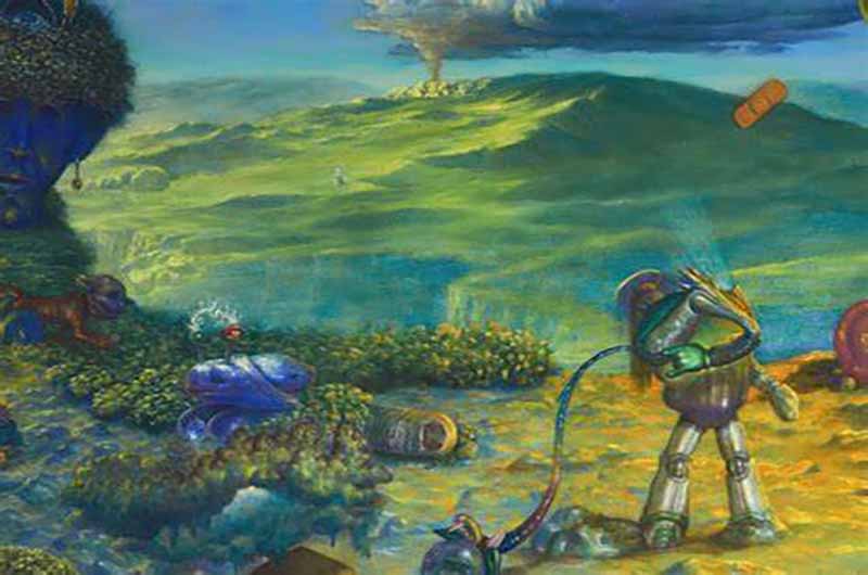 Sasha Toli (Narni, 2000). Studente all’Accademia di Belle Arti di Urbino, si avvicina alla  pittura negli anni di frequentazione del liceo artistico ‘O. Metelli’ di Terni. È affascinato dal modo in cui la morfologia pittorica riesce ad assumere una funzione “ierofanica” cioè rivelatrice e che, come sosteneva Paul Klee, non vuole rendere il visibile, ma rendere visibile. L’opera, considerata talvolta in epoca contemporanea come ‘oggetto’ numinoso, è animata da una libera attività creatrice, questo permette alle influenze dell’artista di convergere nella tragicomica tensione, necessaria affinché l’opera sia risolta. Il suo interesse per il mondo naturale, lo ha portato a conoscere la storia di piante e funghi psichedelici, accrescendo la fascinazione verso il misticismo e il sacro parallelamente alla musica e la cultura pop.
