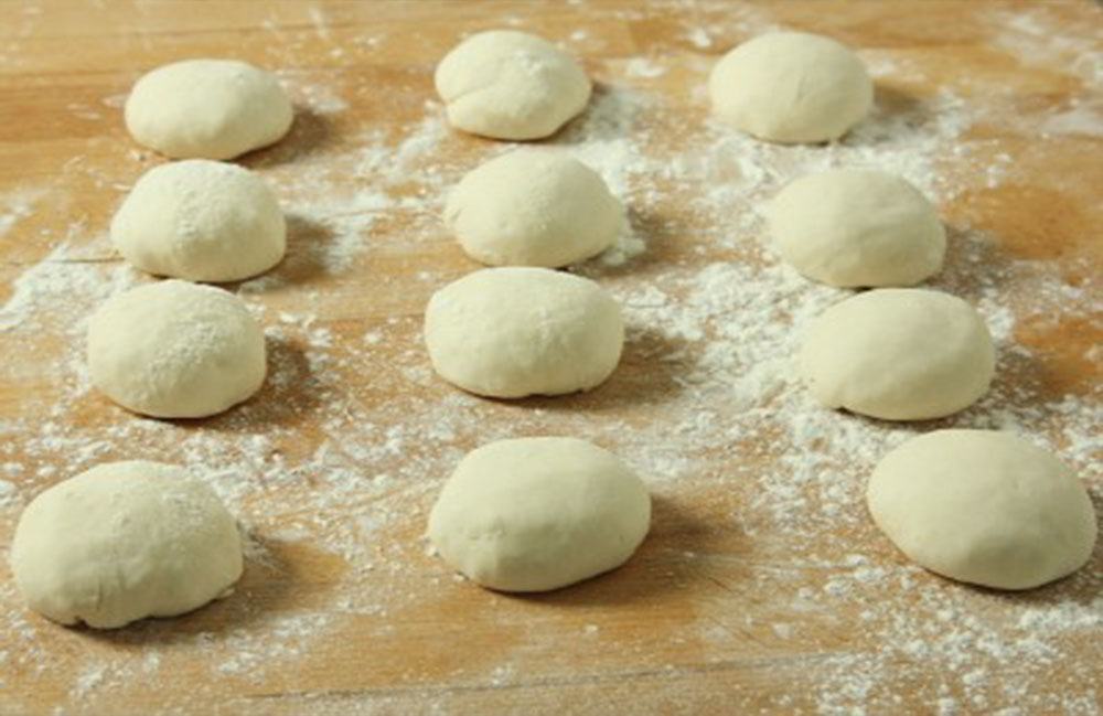 Trascorsa l’ora, col matterello si tira una sfoglia molto sottile e con un bicchiere o un coppapasta si ricavano dei dischi (30-40 x un totale di 15- 20 pizzette) al cui centro va messo un cucchiaino di impasto,ad ogni disco se ne sovrappone un altro ed alla fine i bordi vanno sigillati con i rebbi di una forchetta.
