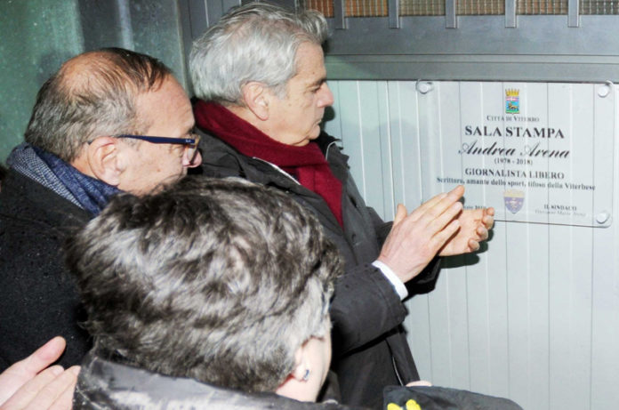 “Andrea – ha detto il padron della Viterbese, Piero Camilli aveva un privilegio di pochi: la libertà intellettuale”. Lo ricorda la targa che identifica la intitolazione ”Sala Stampa Andrea Arena, giornalista libero, scrittore, amante dello sport, tifoso della Viterbese”.